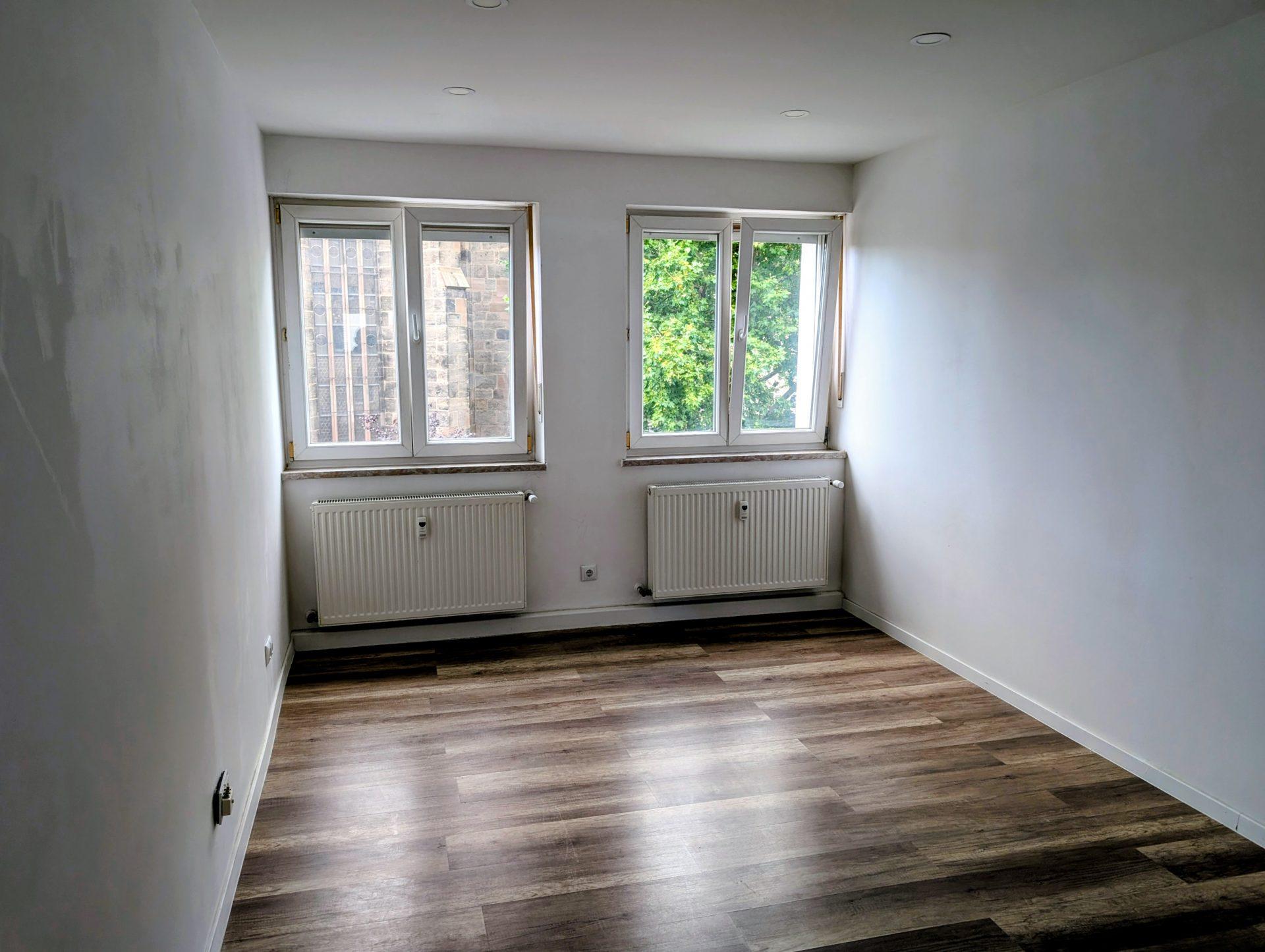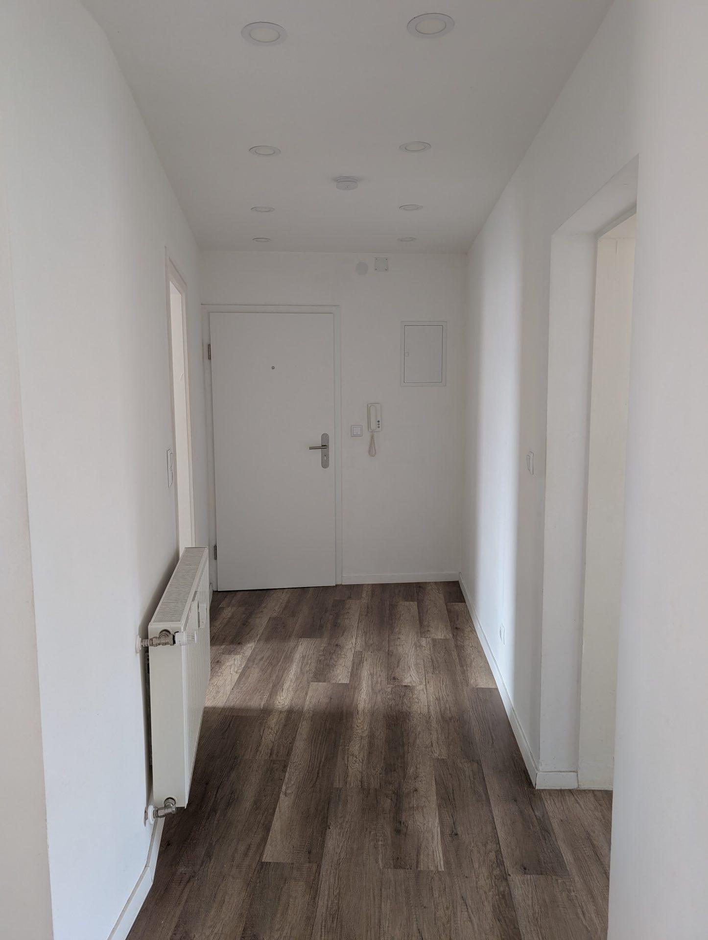 - Aufteilung: Beim Betreten der Wohnung gelangen Sie in den Flur, von dem aus alle Zimmer zugänglich sind.