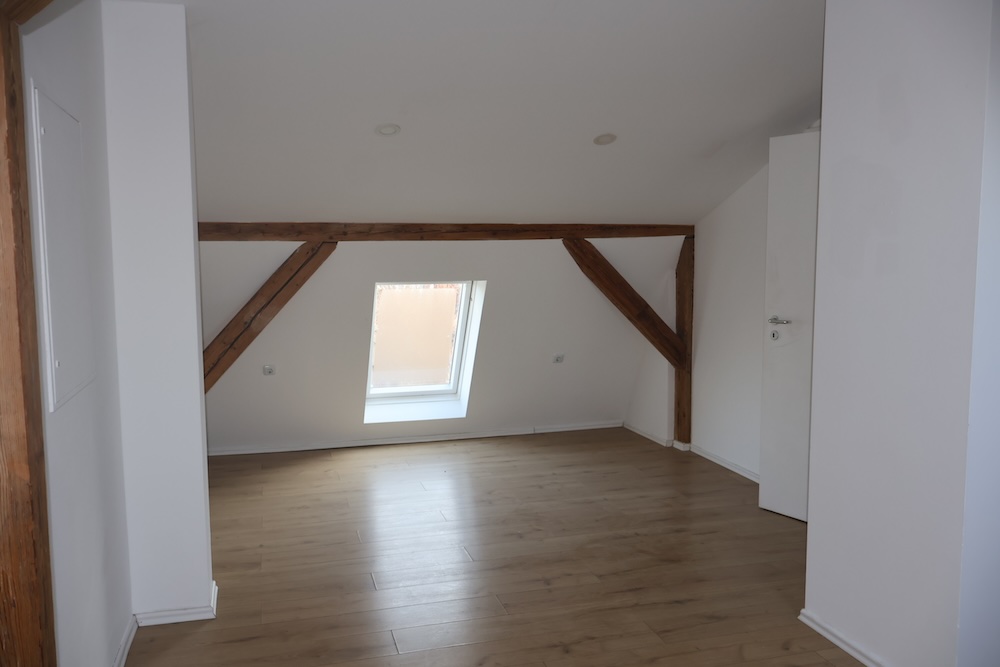 Dachgeschoss-Feeling: Zwei gemütliche Zimmer im DG mit charmanten Sichtbalken.