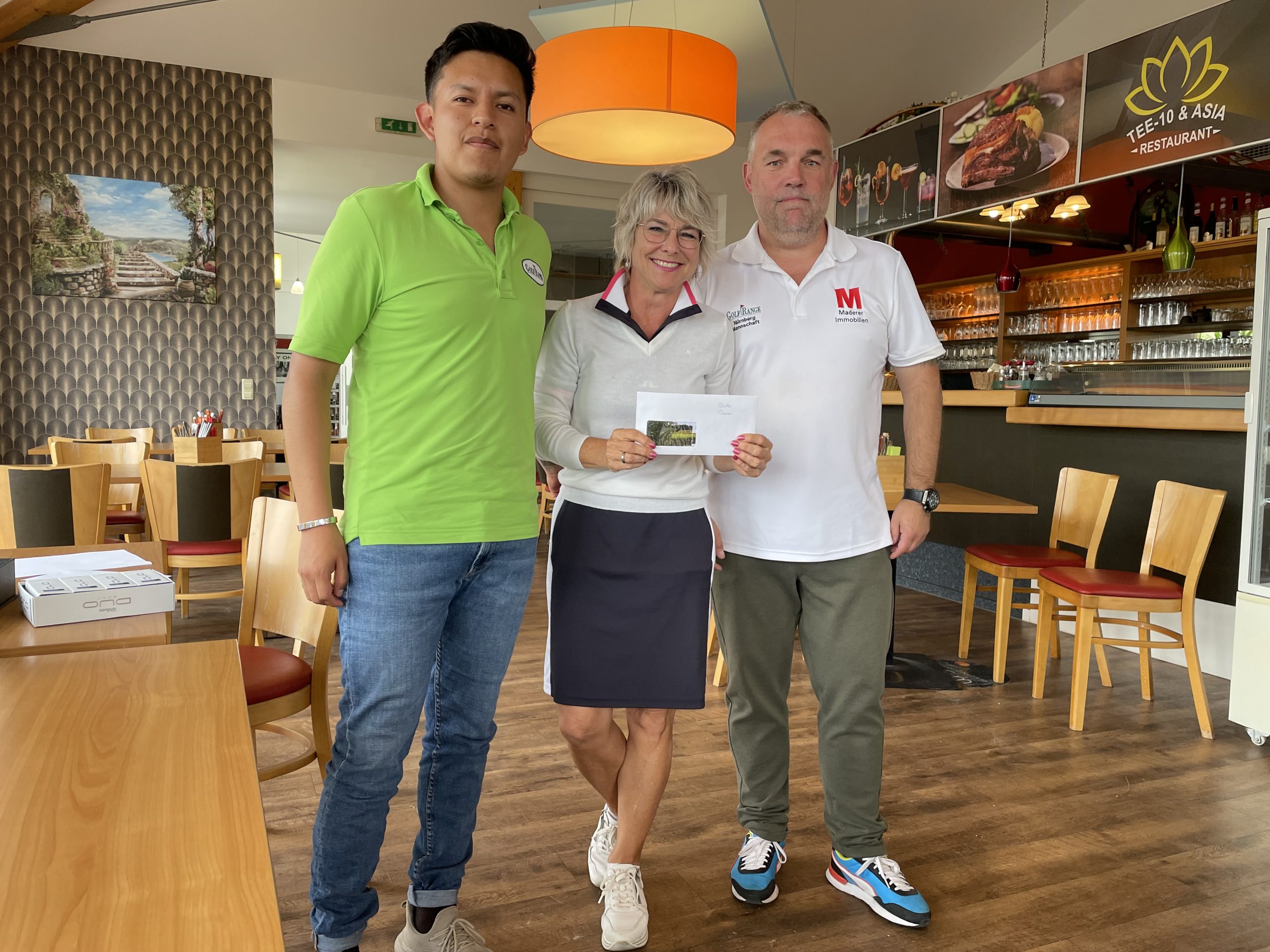 In der getrennten Wertung der besten Golferin an diesem Tag spielte sich Anna Fackelmann wieder in den Vordergrund. Die Vorjahres-Gesamtsiegerin notierte zehn Brutto, und das reichte, um sich vor Jutta Schulz-Kögl (9) und Jutta Teufel (5) den Preis für den Tagessieg zu schnappen.