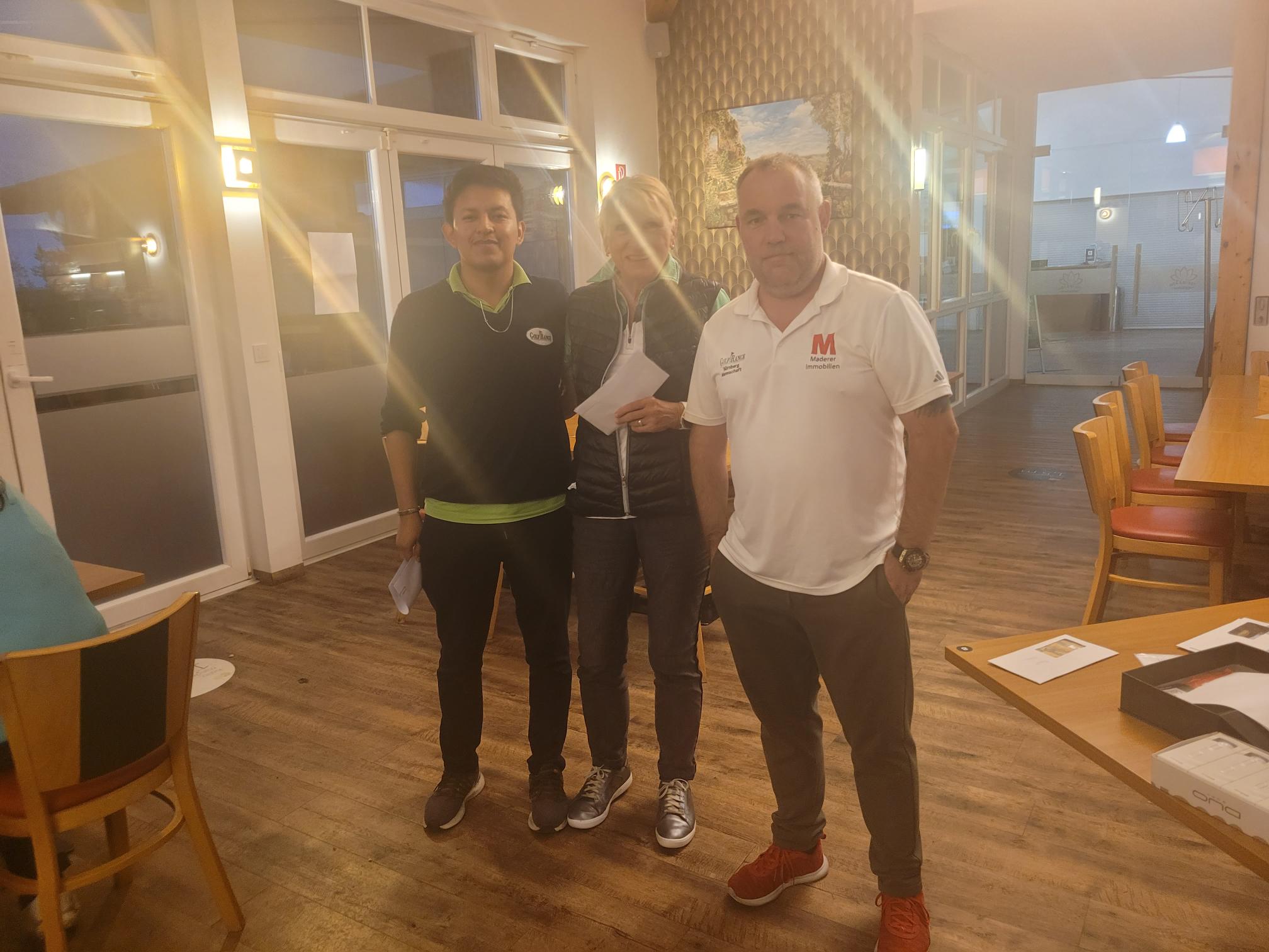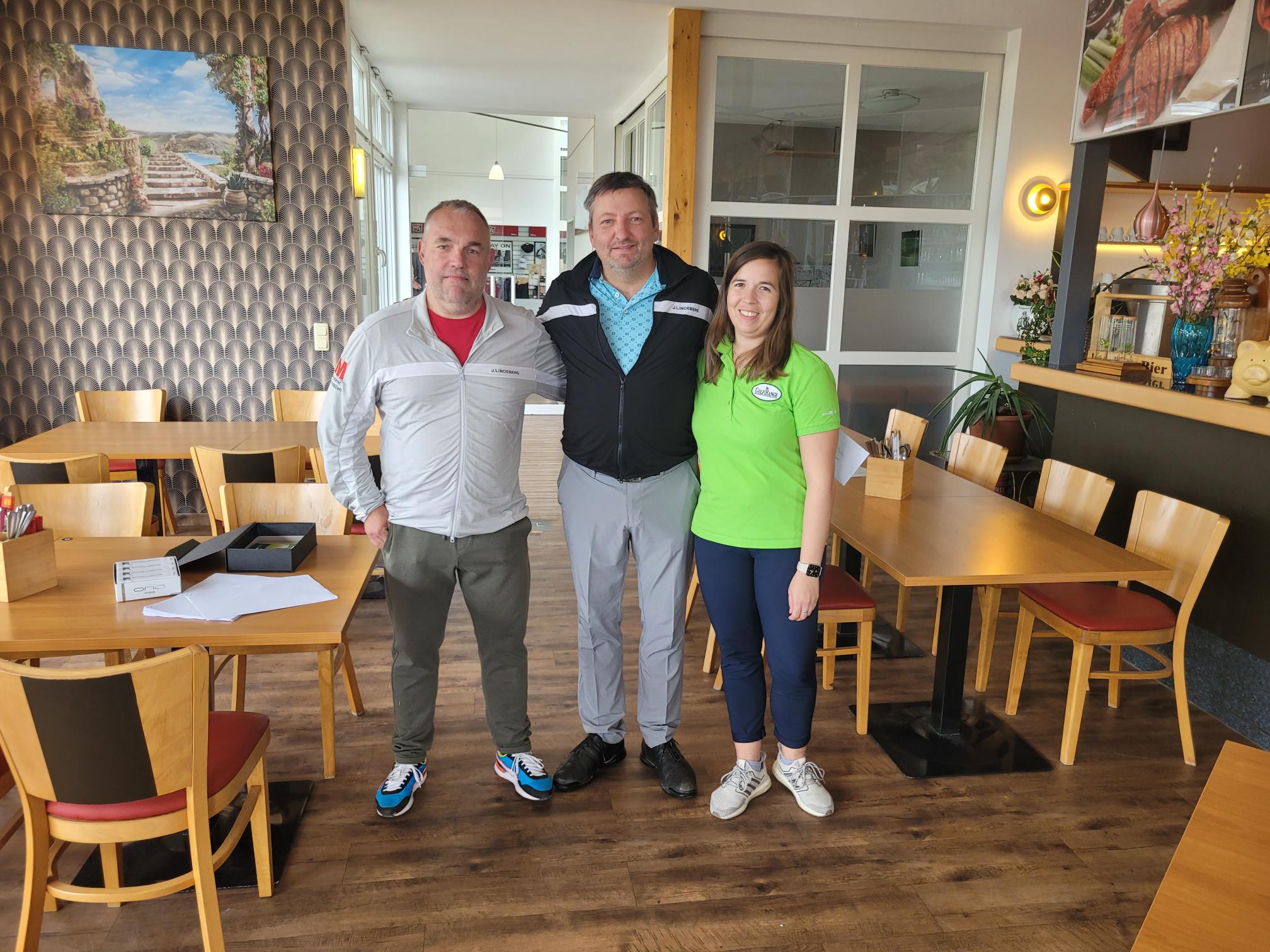 Die Bruttowertung der Damen entschied Mona Schultes hauchdünn für sich. Mit 7 Brutto verwies sie Daniela Wolfrum (6) auf Platz zwei. Bei den Männern machte einmal mehr Mannschaftsspieler Liu Xinyu mit 14 Brutto das Rennen. Und mit je 13 in Schlagdistanz lagen direkt dahinter? Genau: Christian Haupt und Martin Fischer, die starken Debütanten.