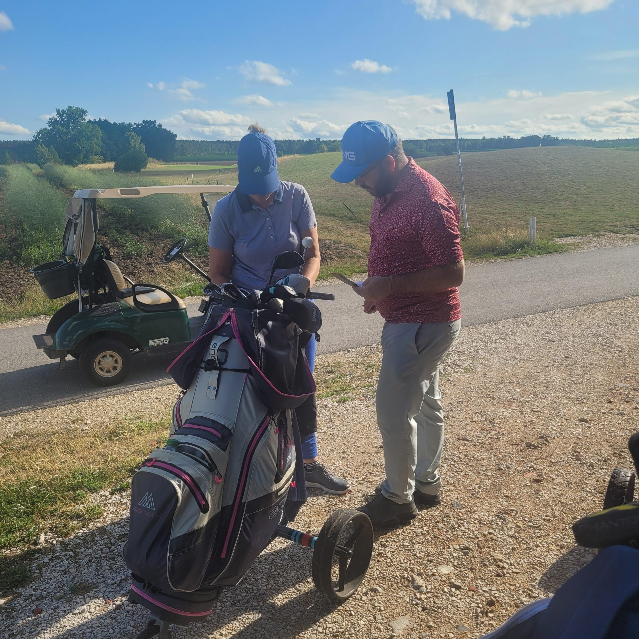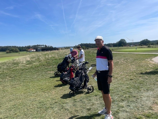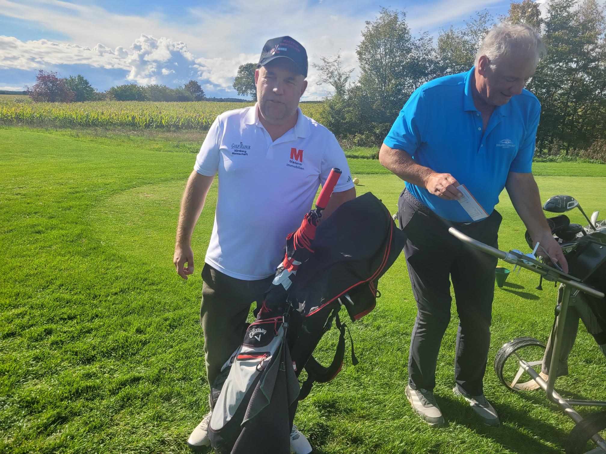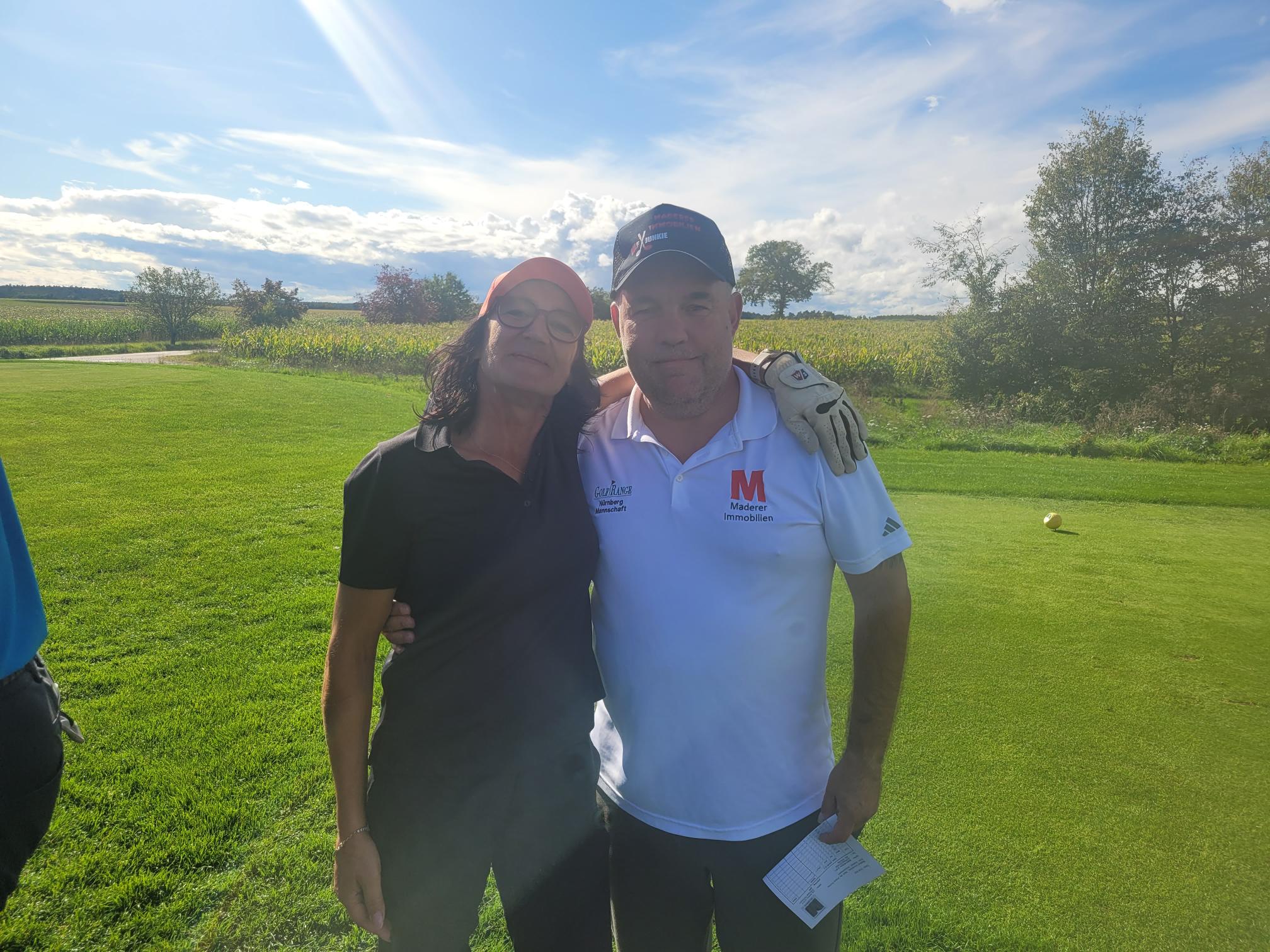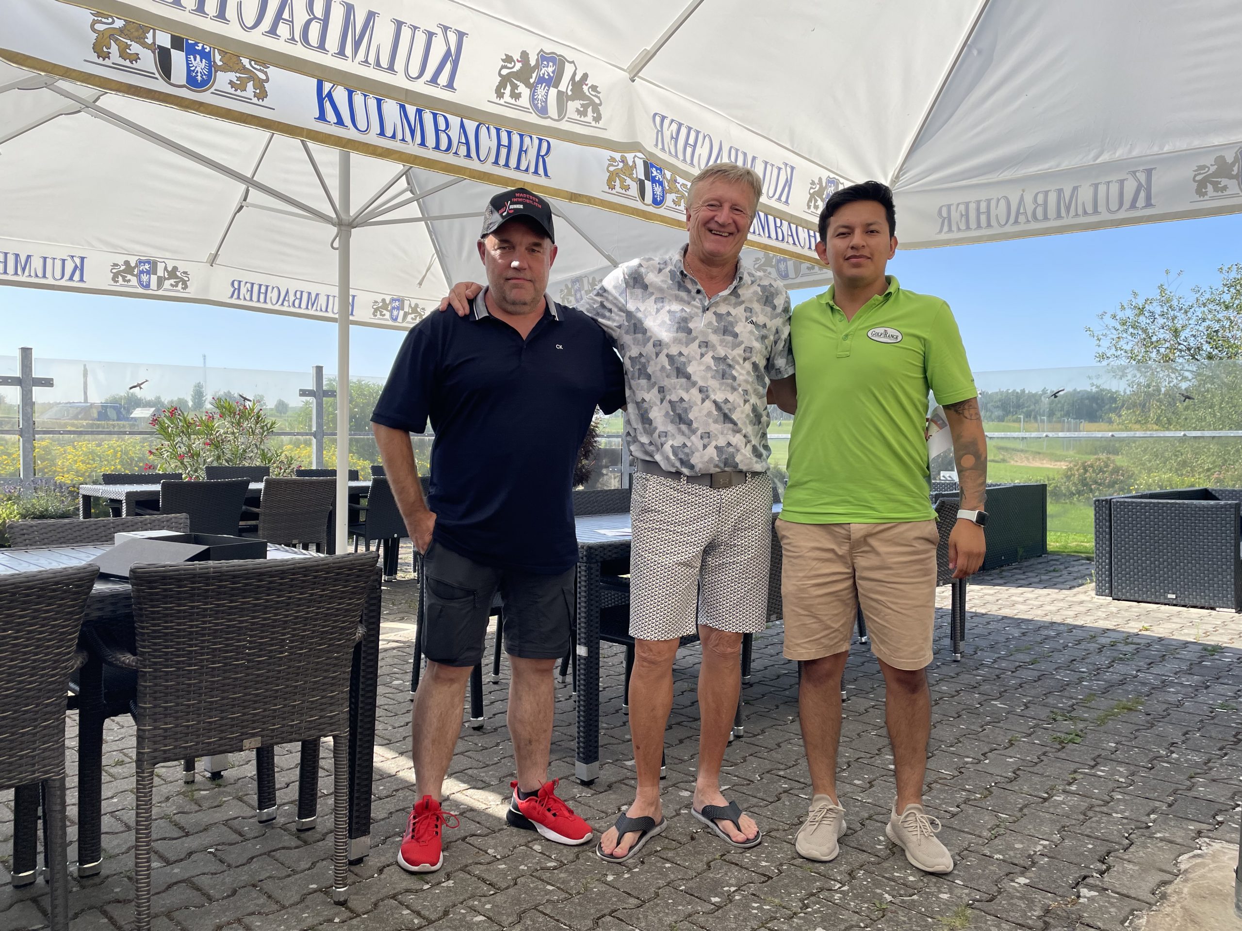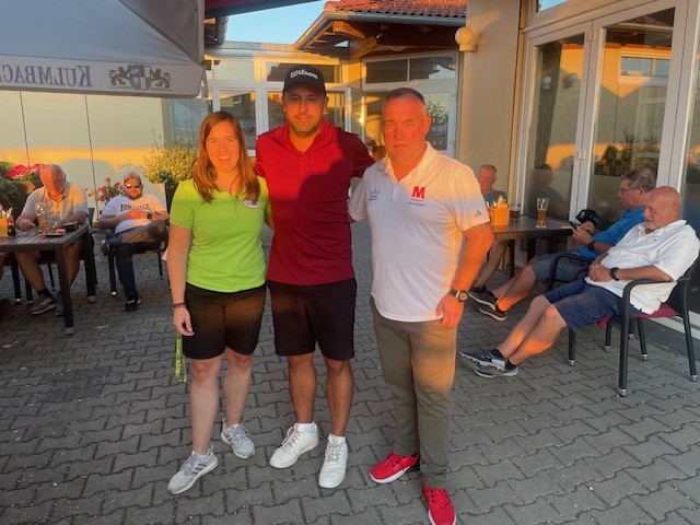 Den hohen Temperaturen begegnete das Team von Sponsor Jörg Maderer zunächst mit vielen Eimern Wassern, die den Spielerinnen und Spielern an jedem Loch zur Abkühlung zur Verfügung standen. Hernach gabs natürlich auch das obligatorische Freigetränk, und gefeiert werden durfte auch: Dabei stach ein Gast-Duo des GC Herzogenaurach besonders hervor.