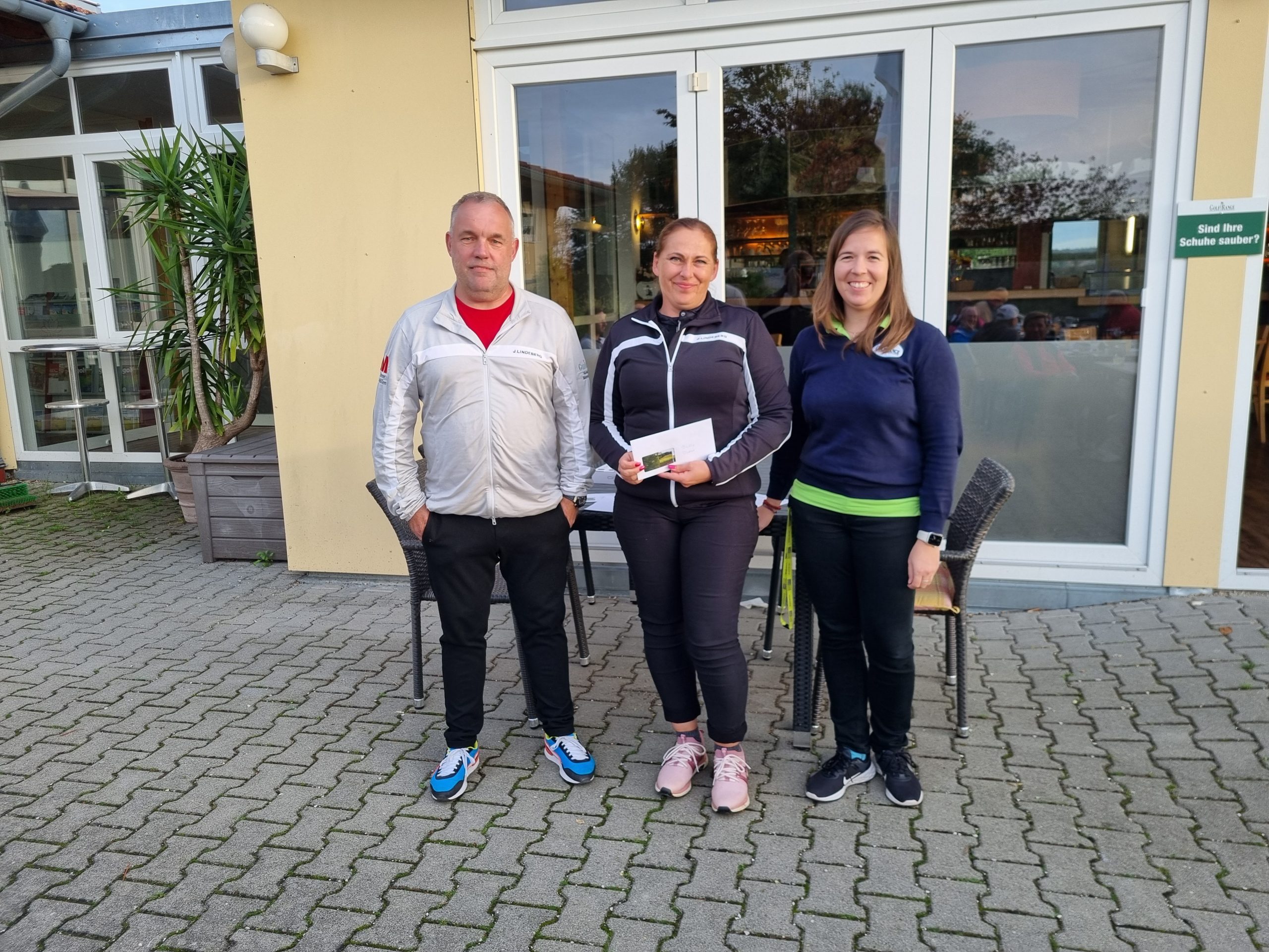 Ein großes Hallo galt freilich den Birdiespielern – allzu viele waren das diesmal nicht. Anna Fackelmann und Jutta Teufel gelang aber jeweils eine Unterspielung, und einbezahlt hatten sie zuvor auch. So durfte sich das erfolgreiche Duo den auf 240 Euro angewachsenen Pool teilen. Chapeau!